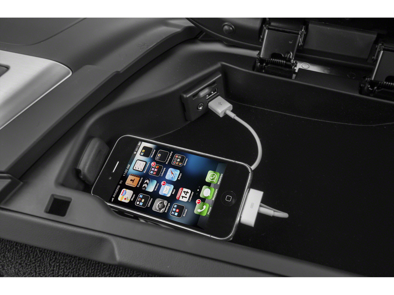 - Storage, with electric locking glovebox, behind screen storage, center console and rear compartment with cover