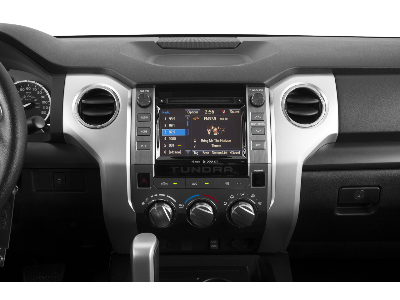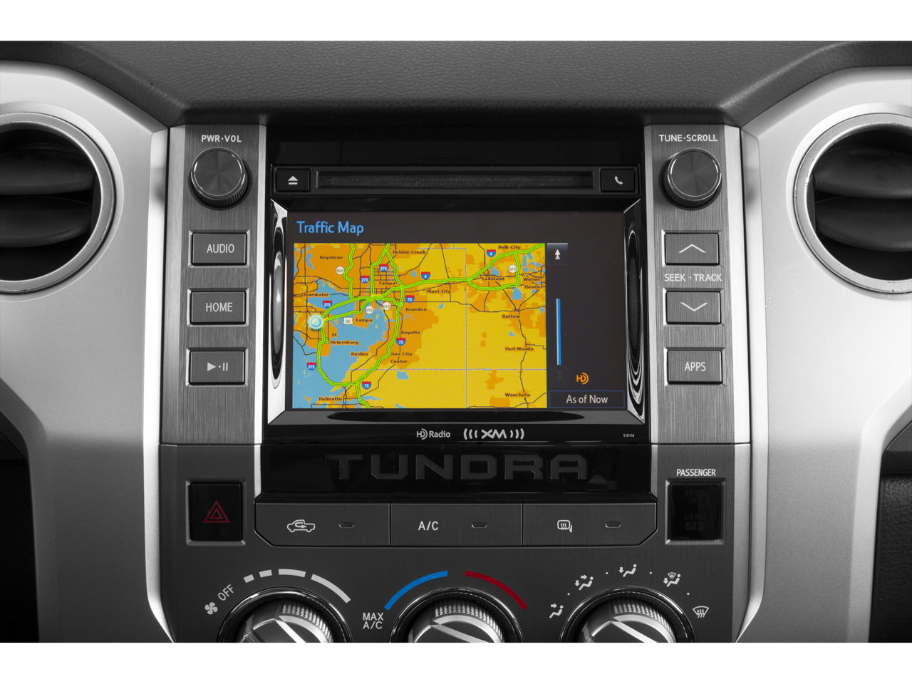 - Radio: Entune Audio Display AM/FM/HD w/CD Player -inc: MP3/WMA playback capability, high-resolution 7" touch-screen display, auxiliary audio jack, USB 2.0 port, iPod connectivity and control, iTunes Tagging, traffic and weather, Bluetooth® hands-free phone capability, phone book access, voice recognition and music streaming, SIRIUSXM Satellite Radio, 90-day free trial