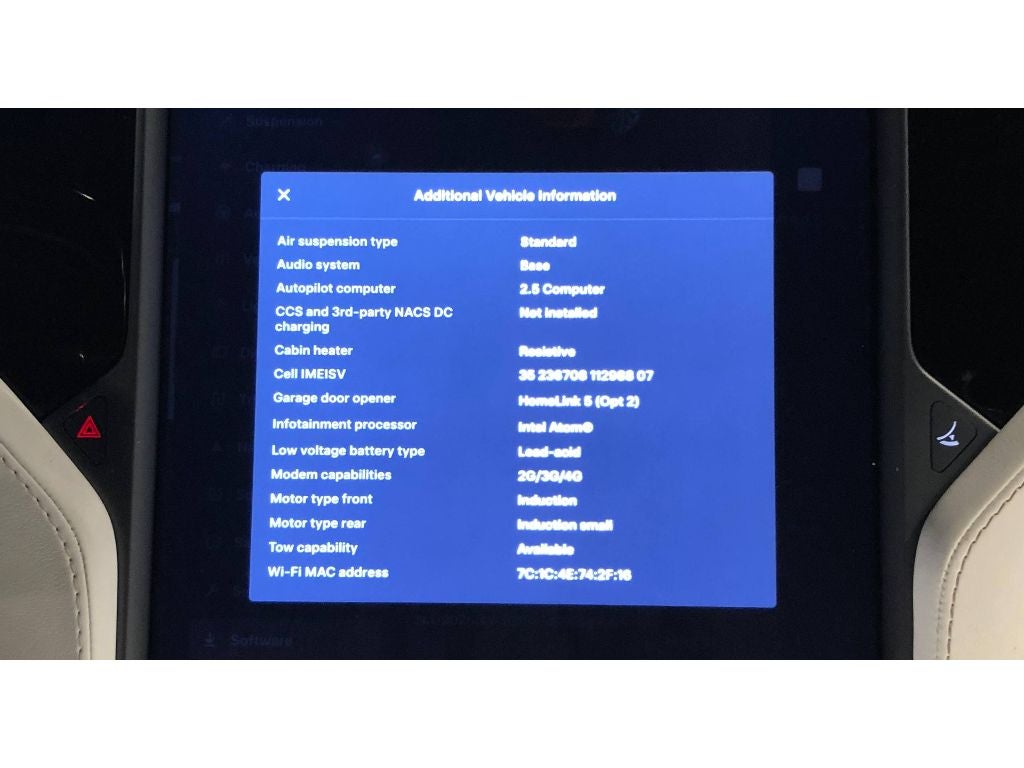 Enhanced Autopilot: 4 Cameras; Traffic-Aware Cruise Control; Lane Keeping with Automatic Steering; Self-Parking Enhanced Autopilot: 4 Cameras; Traffic-Aware Cruise Control; Lane Keeping with Automatic Steering; Self-Parking 6 Seat Interior 22" Onyx Black Wheels 7 Seat Interior Red Multi-Coat 20" Sonic Carbon Wheels Obsidian Black Metallic Silver Metallic Pearl White Multi-Coat White and Black Premium Interior Cream Premium Interior Midnight Silver Metallic Deep Blue Metallic **Equipment listed is based on original vehicle build and subject to change. Please confirm the accuracy of the included equipment by calling the dealer prior to purchase.**