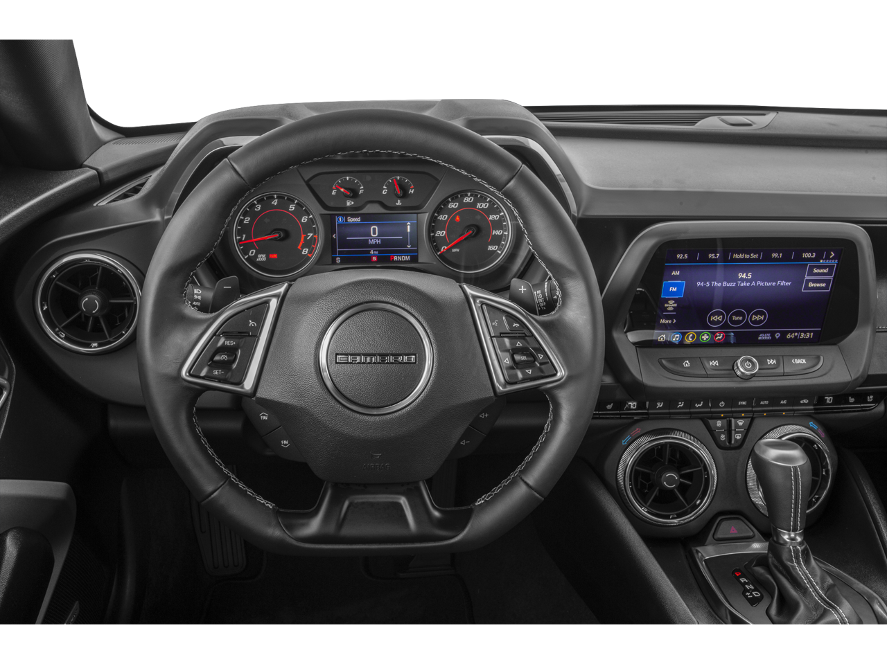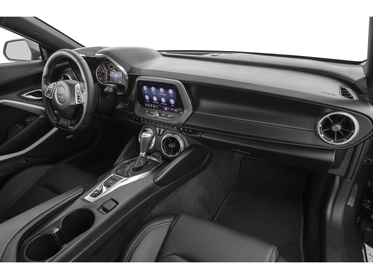 This unit offers Apple CarPlay for seamless connectivity. The Chevrolet Camaro keeps you comfortable with Auto Climate. The vehicle features a high end BOSE stereo system. This vehicle features a hands-free Bluetooth® phone system. This Chevrolet Camaro is pure luxury with a heated steering wheel. The leather seats in it are a must for buyers looking for comfort, durability, and style. See what's behind you with the back up camera on the vehicle. You'll never again be lost in a crowded city or a country region with the navigation system on this small car. The state of the art park assist system will guide you easily into any spot. Start this vehicle from inside with remote start. This Chevrolet Camaro comes equipped with Android Auto for seamless smartphone integration on the road. It is painted with a sleek and sophisticated black color. The Chevrolet Camaro has a V8, 6.2L high output engine.