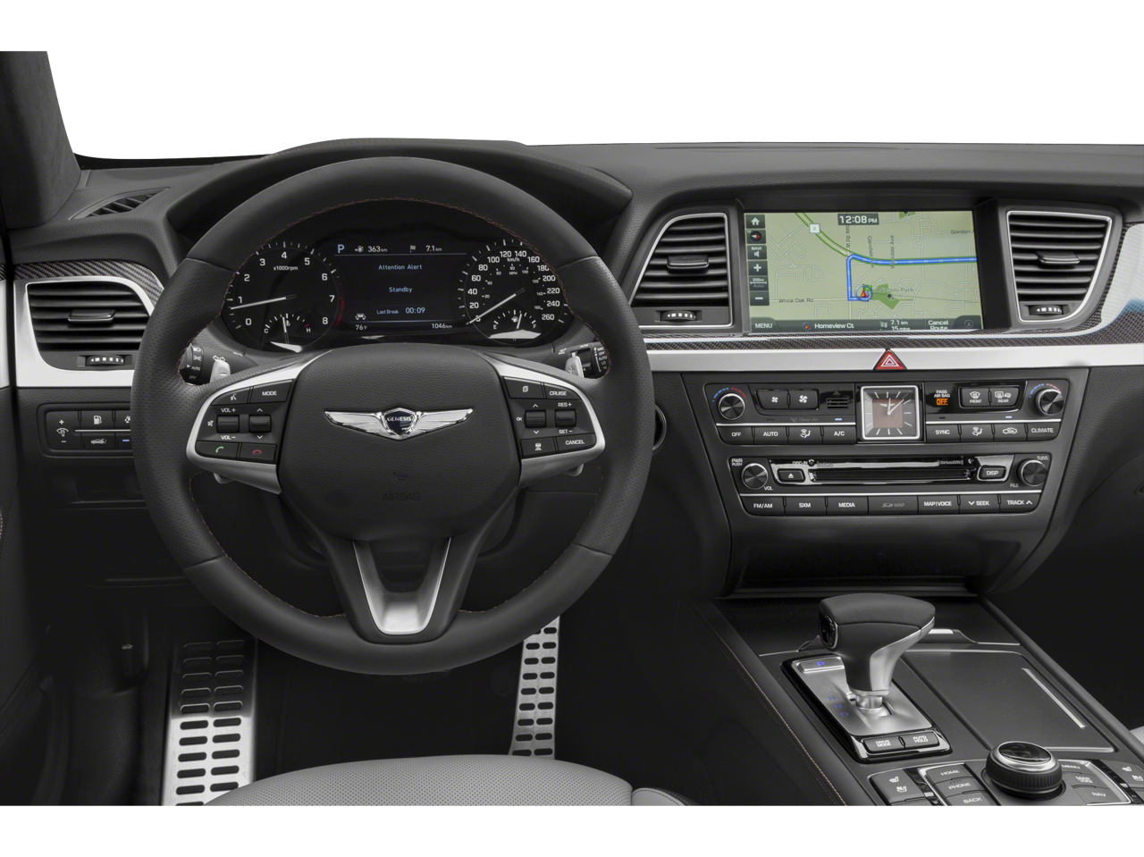 - Radio: AM/FM/HD/SiriusXM/CD/DVD/MP3 Audio System -inc: Lexicon Quantum Logic surround sound system w/17 high efficiency speakers (1 front coaxial dash-mounted midrange, 1 front dash-mounted tweeter, 2 front dash-mounted midrange, 2 front door-mounted tweeters, 2 front door-mounted woofers, 2 rear door-mounted tweeters, 2 rear door-mounted midrange, 2 rear door-mounted woofers, 2 rear deck midrange and rear deck subwoofer), Clari-FI Music Restoration Technology, Lexicon 12-channel digital external amplifier: 75W x 12 channels (900W max, equivalent output), speed-sensing auto volume control, AVN 2.0 navigation system, 9.2" touchscreen 720P HD display, driver information system, SiriusXM Traffic, Android Auto, Apple CarPlay, 1 USB data/charge plus 1 USB charge only, Bluetooth® hands-free phone system w/audio streaming and Genesis Connected Services