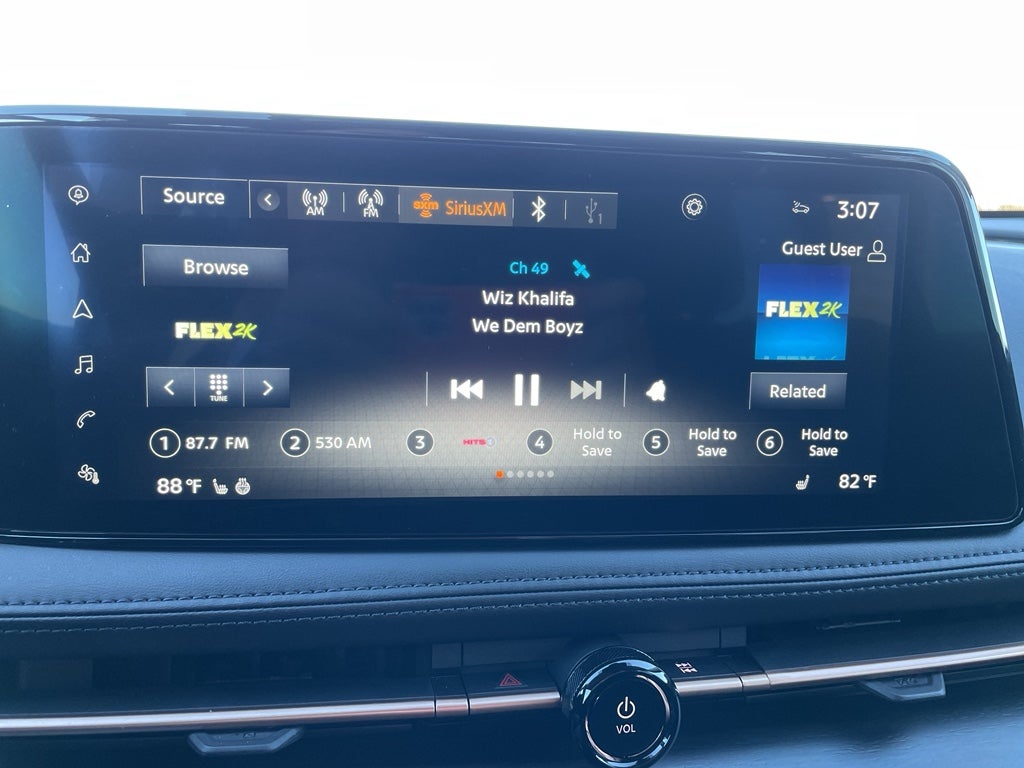 - Radio: AM/FM Audio System -inc: 12.3" color display w/multi-touch control, 6 speakers, MP3/WMA playback, Bluetooth® streaming audio, speed-sensitive volume control (SSV), satellite radio pre-wiring, SiriusXM satellite radio w/advanced features, SiriusXM Traffic, SiriusXM Travel Link, NissanConnect EV featuring wireless Apple CarPlay, wired Android Auto, navigation and NissanConnect services, Bluetooth® hands-free phone system (w/voice recognition in English, French and Spanish), voice destination entry (VDE) and hands-free text messaging assistant